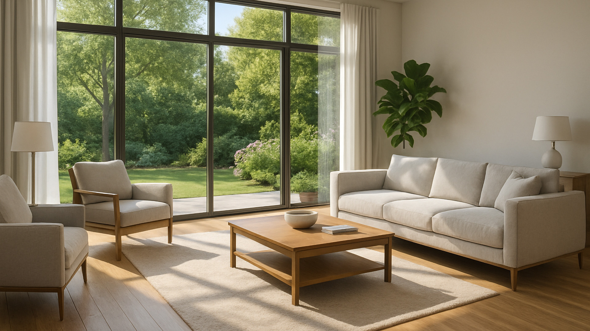 Bright Open-Plan Living Room with Large Windows