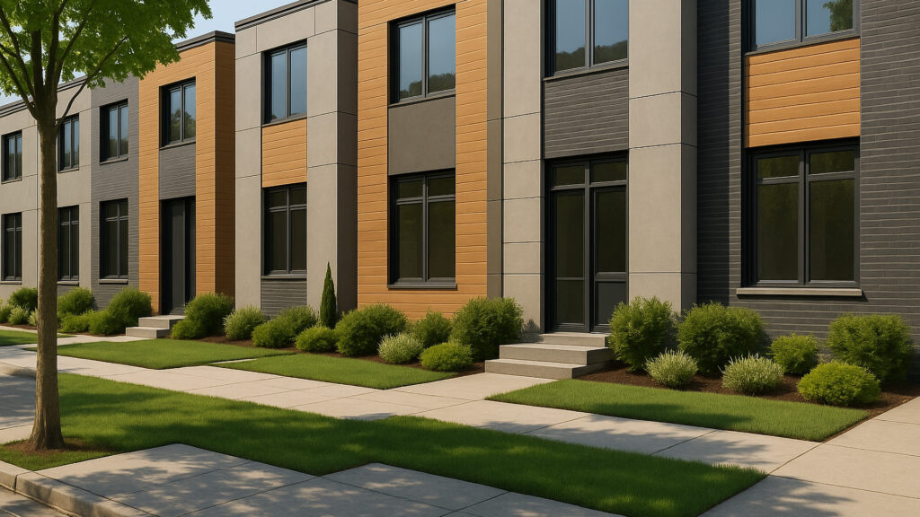 Modern Townhouse Row with Sidewalk